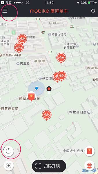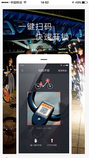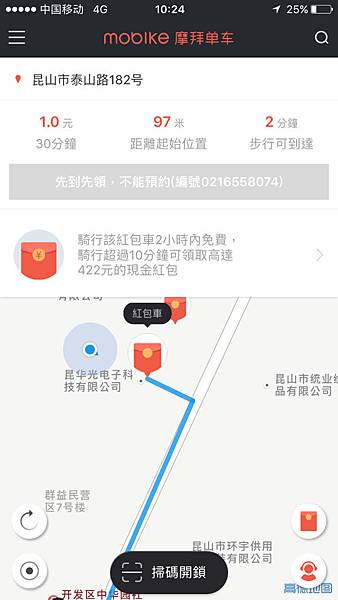 收到簡訊通知後, 就可以開始了; 摩拜的app介面很簡單