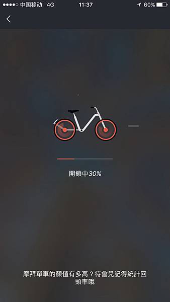 掃完後...會出現開鎖中的畫面然後聽到清脆的開鎖聲, 車子就可以騎了(基本上只要聽到咔咔ㄧ聲就可以騎了,不用等到100%開鎖完成)
